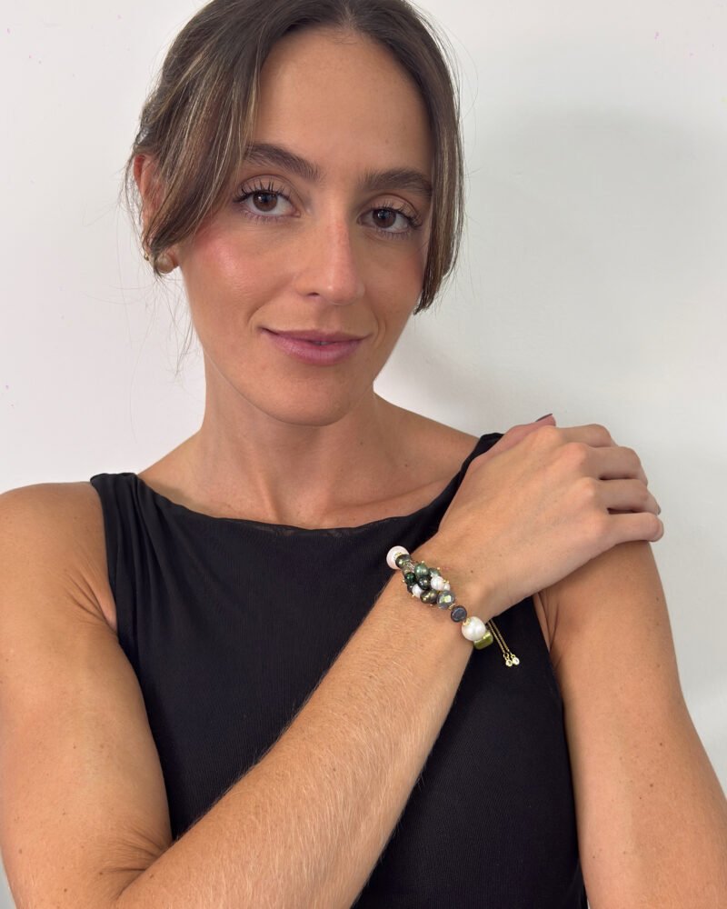 Pulsera ajustable con acabado refinado, diseñada para brindar un ajuste cómodo sin perder elegancia. Una pieza sofisticada que aporta luz, color y estilo en cualquier ocasión.