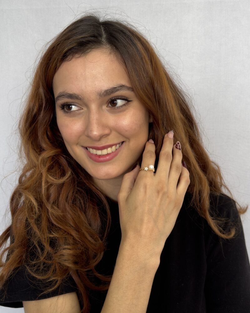 El anillo con perla de 6mm es una propuesta que celebra la coquetería moderna, líneas suaves, textura luminosa y un aire muy femenino.