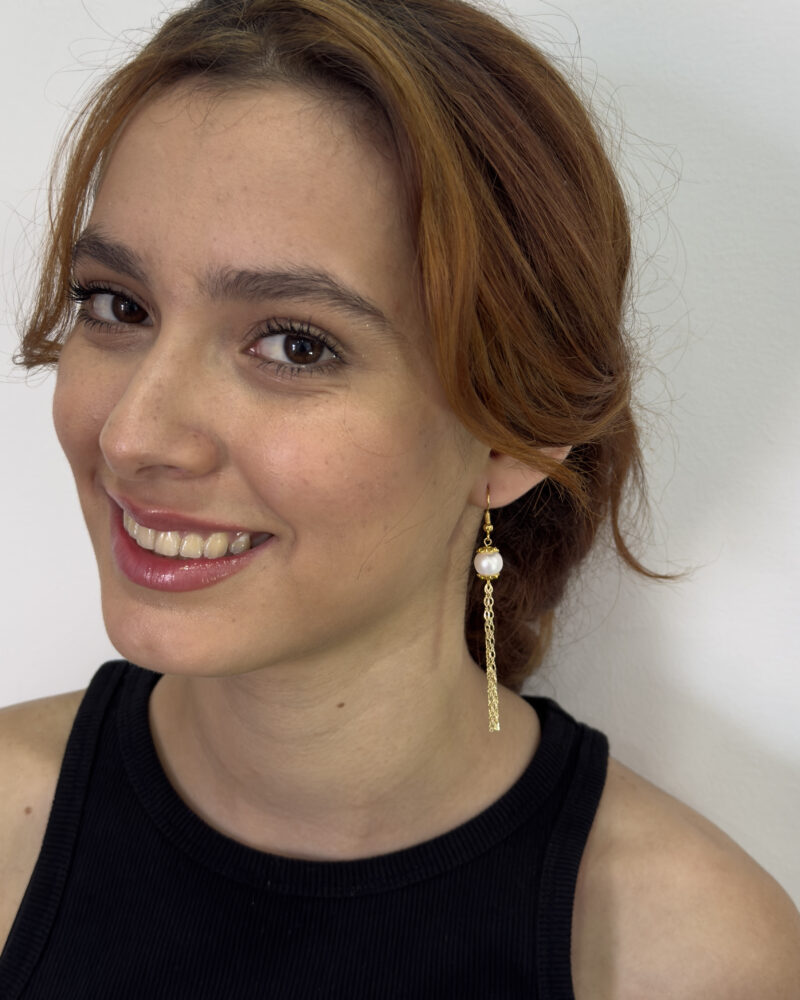 Estos aretes largos dorados con perla cultivada de 10mm son la mezcla ideal entre lo simple y lo sofisticado. Una pieza ligera y versátil que suma un toque elegante sin esfuerzo, pensada para quienes buscan un accesorio que acompañe desde la oficina hasta una cena especial.