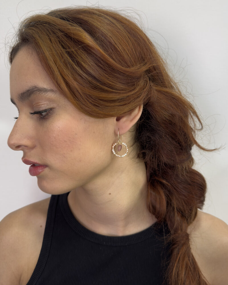 Arete gancho fijo con perlas rosa. Diseño elegante y atemporal que resalta la belleza natural de la perla. Ideal para usar a diario o en ocasiones especiales. Ligero, clásico y con un brillo que no pasa de moda.