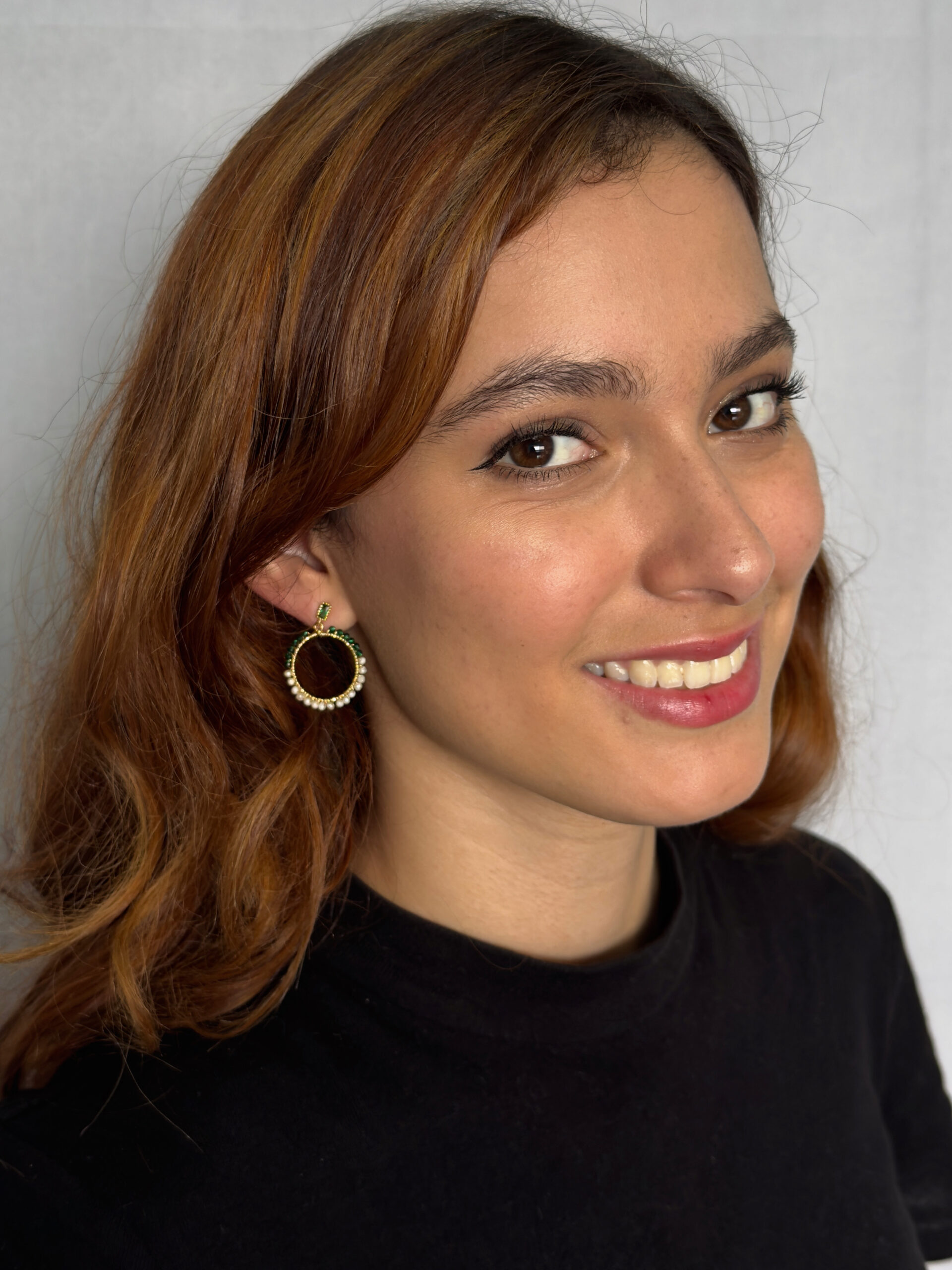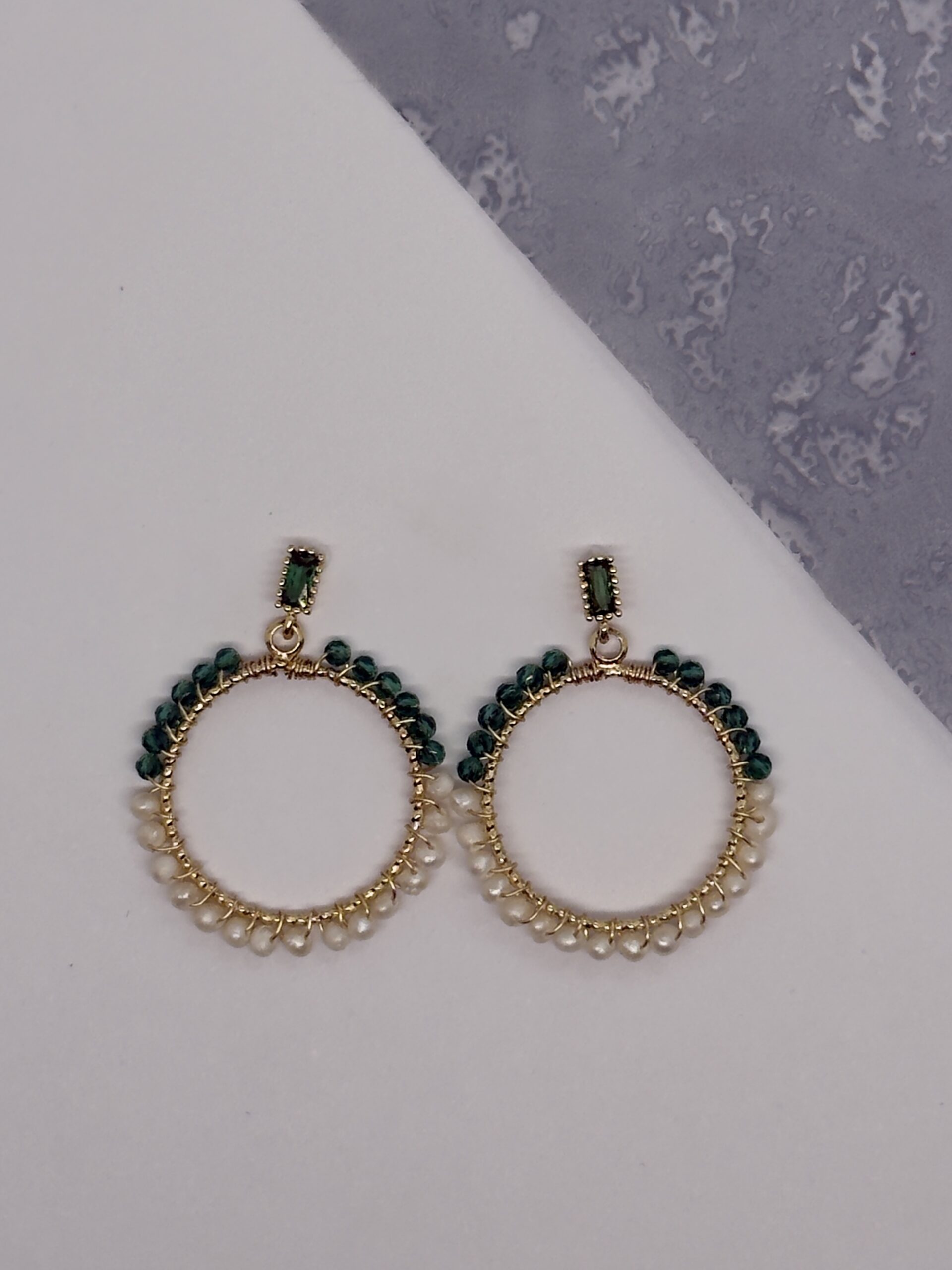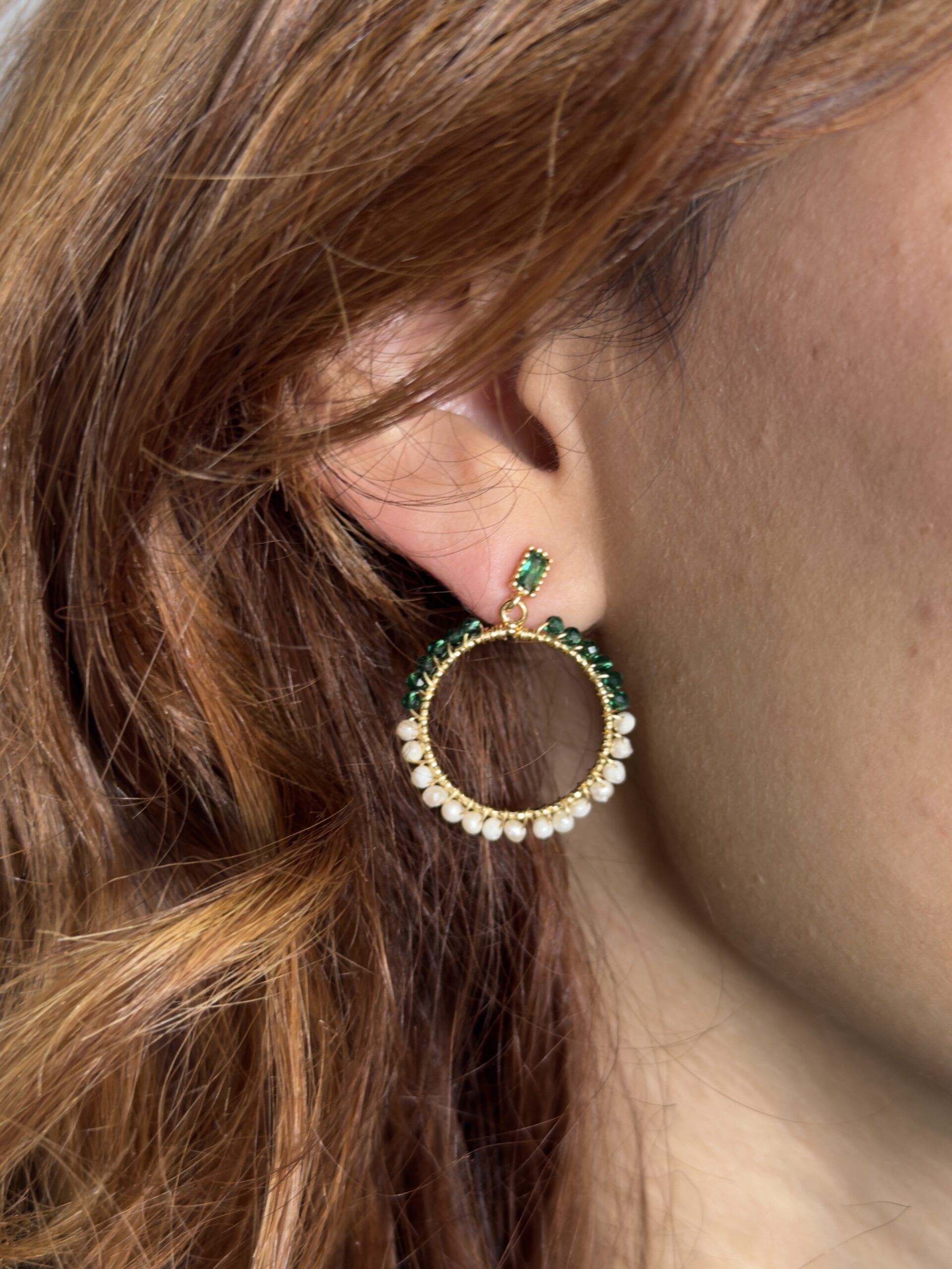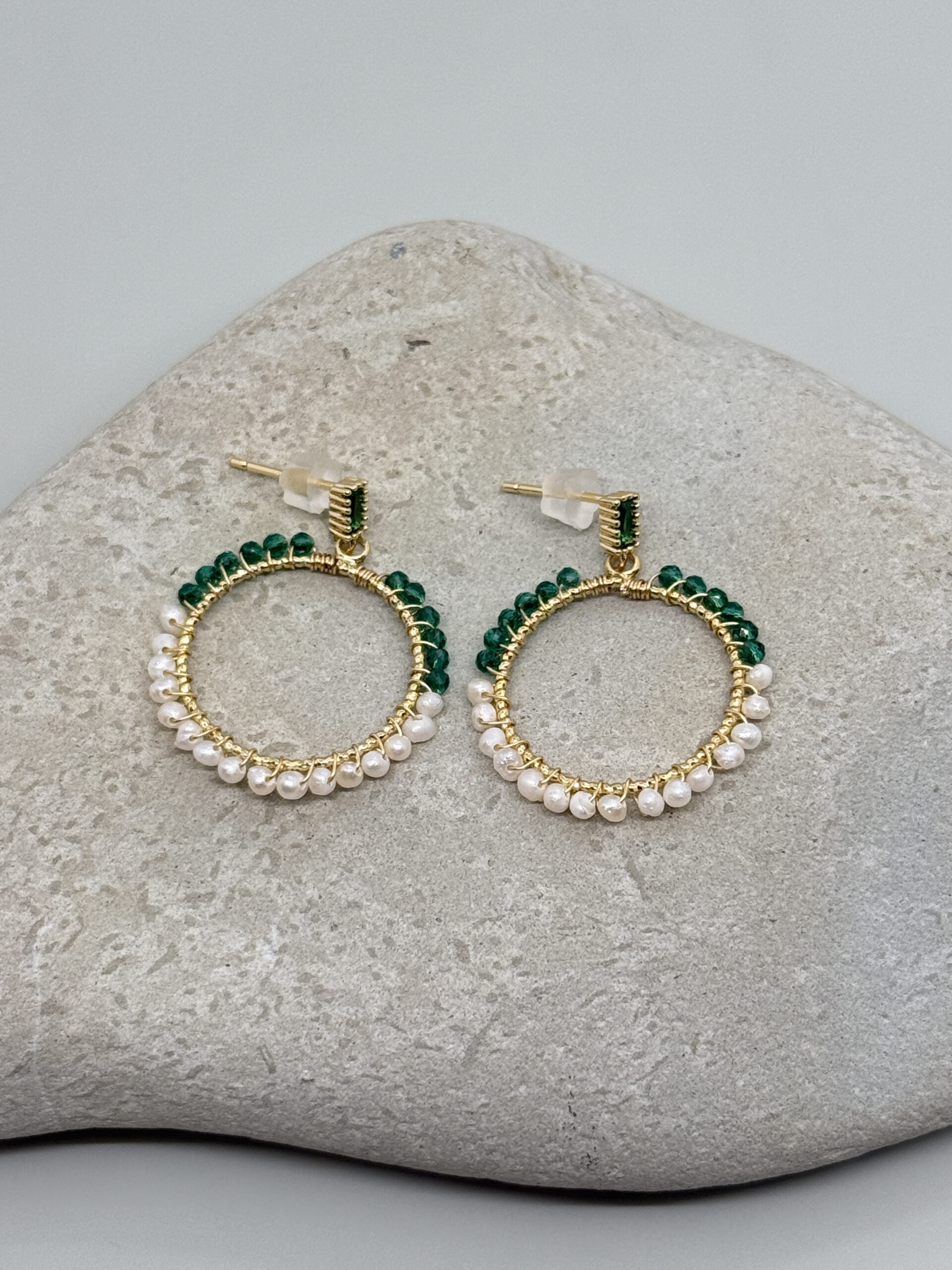 El arete de argolla con perlas de 2mm y piedras verdes son un símbolo de minimalismo absoluto, ideales para destacar tu personalidad