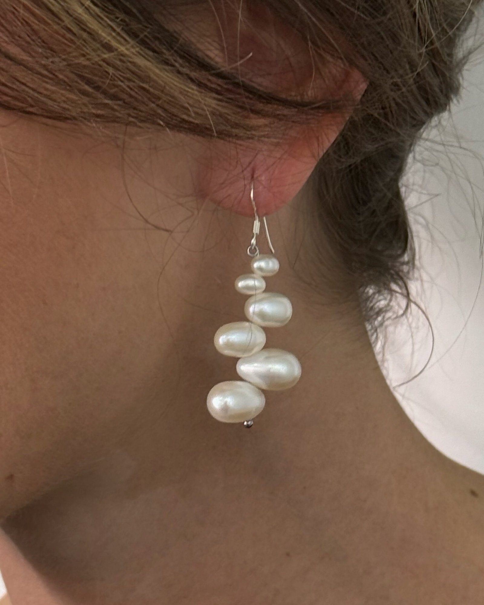 Una reinterpretación moderna de las perlas clásicas. Estos aretes de gancho destacan por su diseño único y su caída sutil, creando un look sofisticado, femenino y con personalidad.