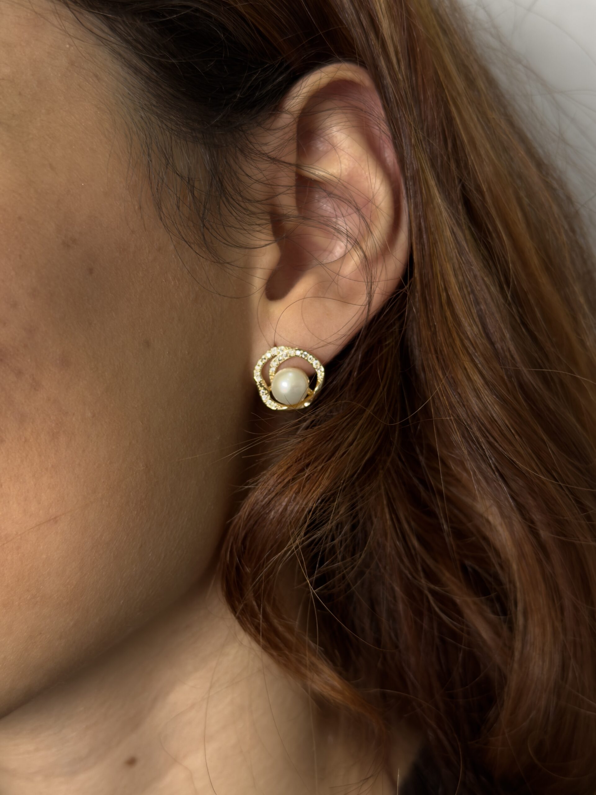 Este diseño de aretes evocando una rosa con un brillo delicado y sus perlas mabe de 6mm le dan un estilo elegante sutil a tu look