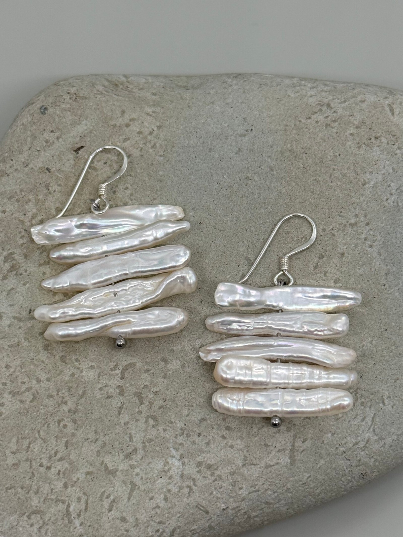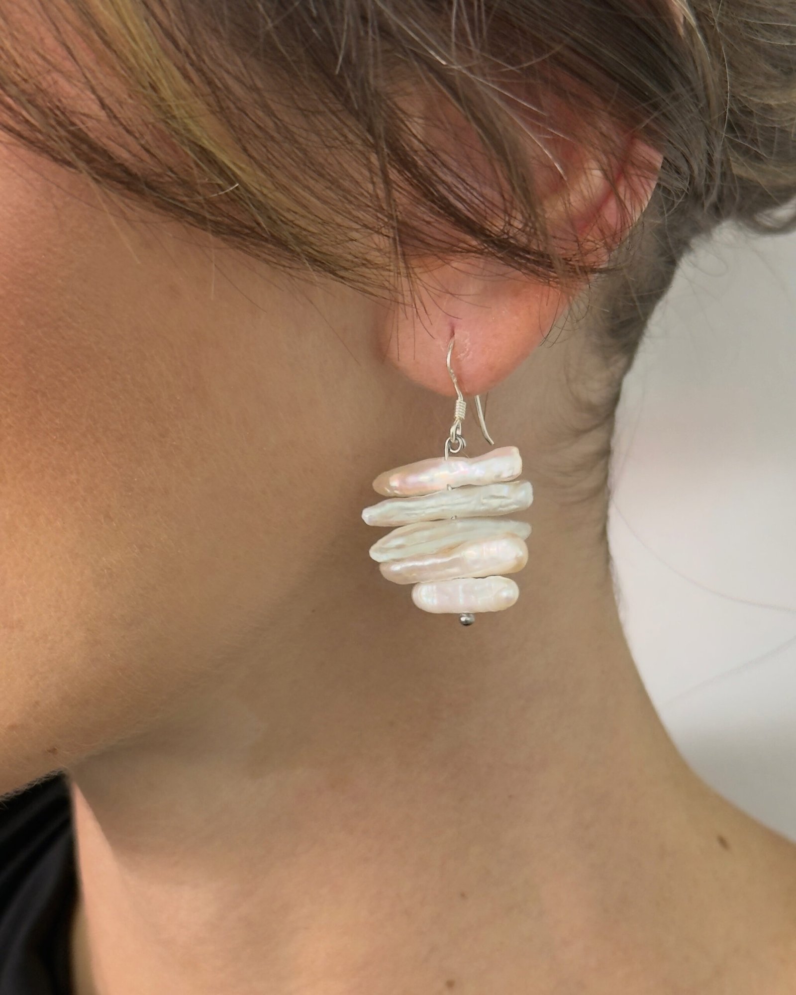 Sutiles pero impactantes. Estos aretes de gancho con perla ofrecen un diseño diferente que combina líneas delicadas con el brillo atemporal de la perla, logrando una pieza versátil y sofisticada.