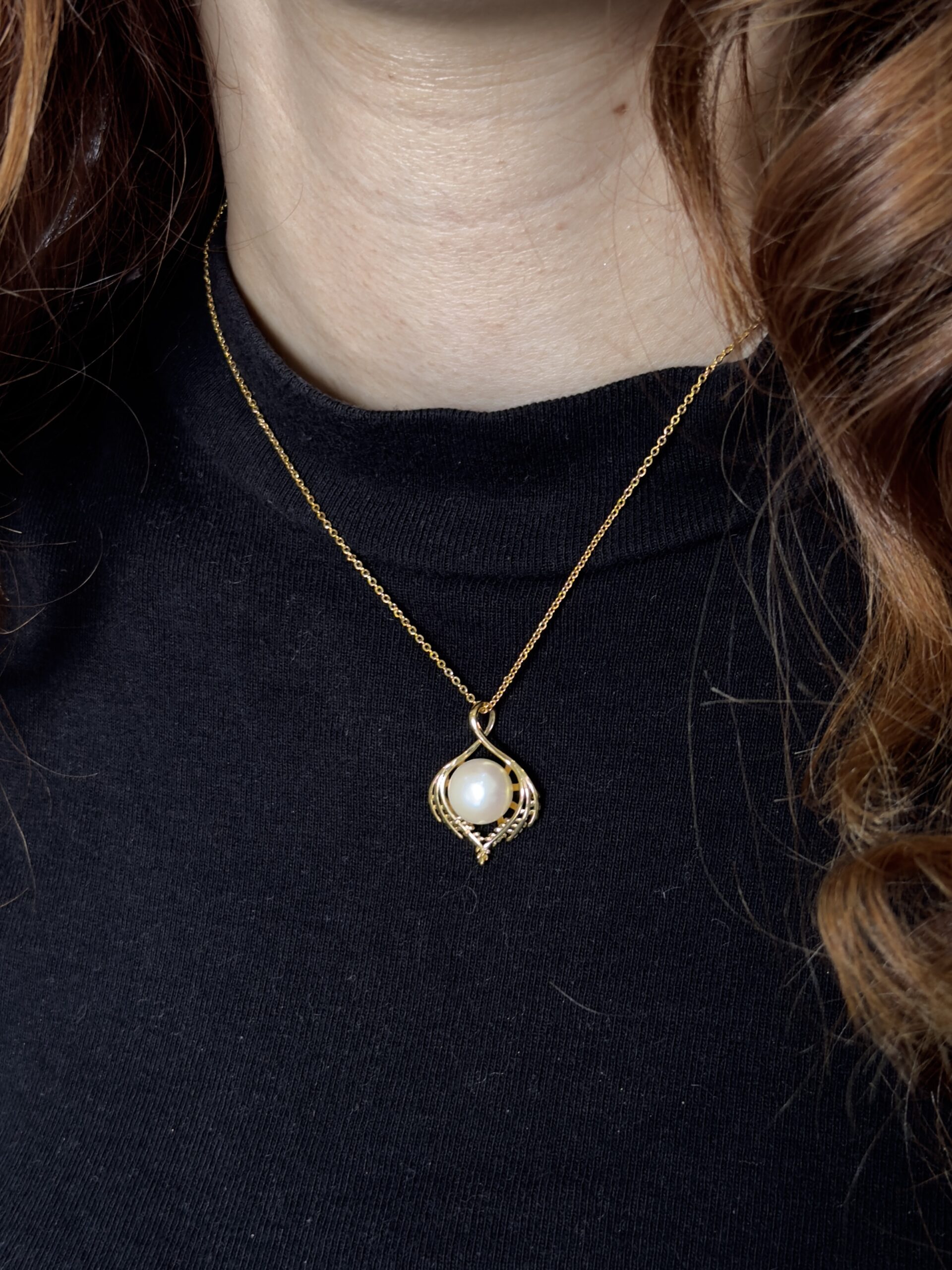 Nuestro dije liz invertido con una perla mabe de 10mm es una pieza de diseño orgánico, un detalle en tu cuello que endulzará tu outfit con un toque especial.