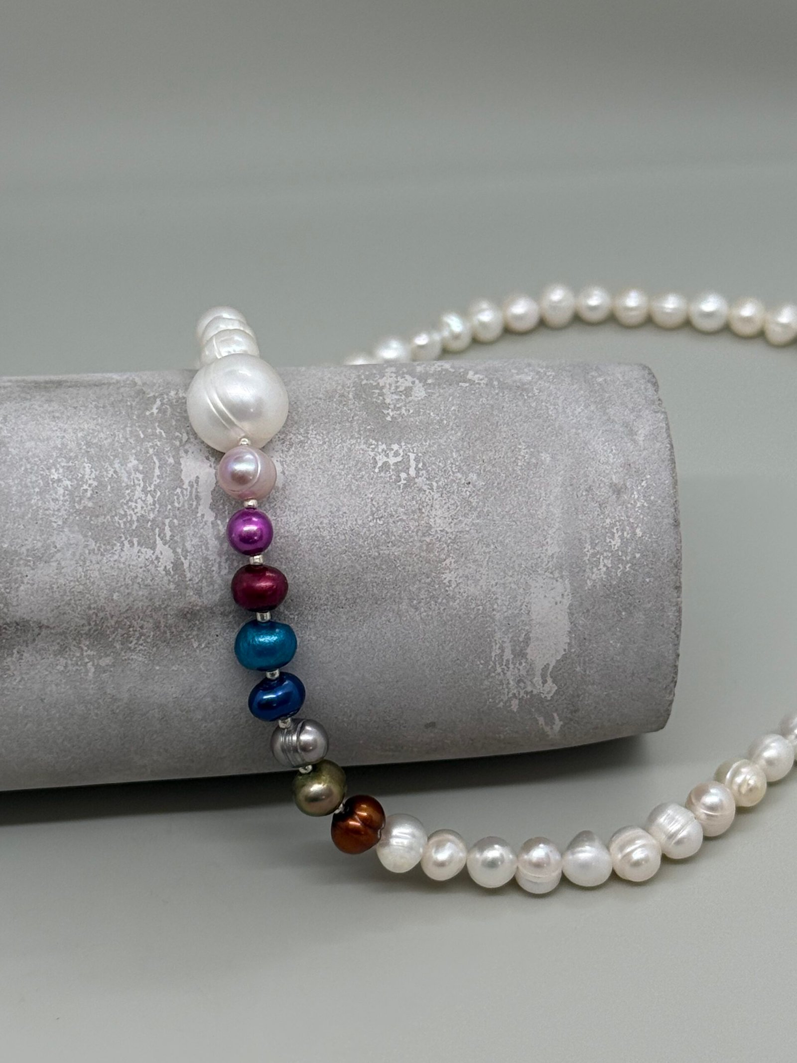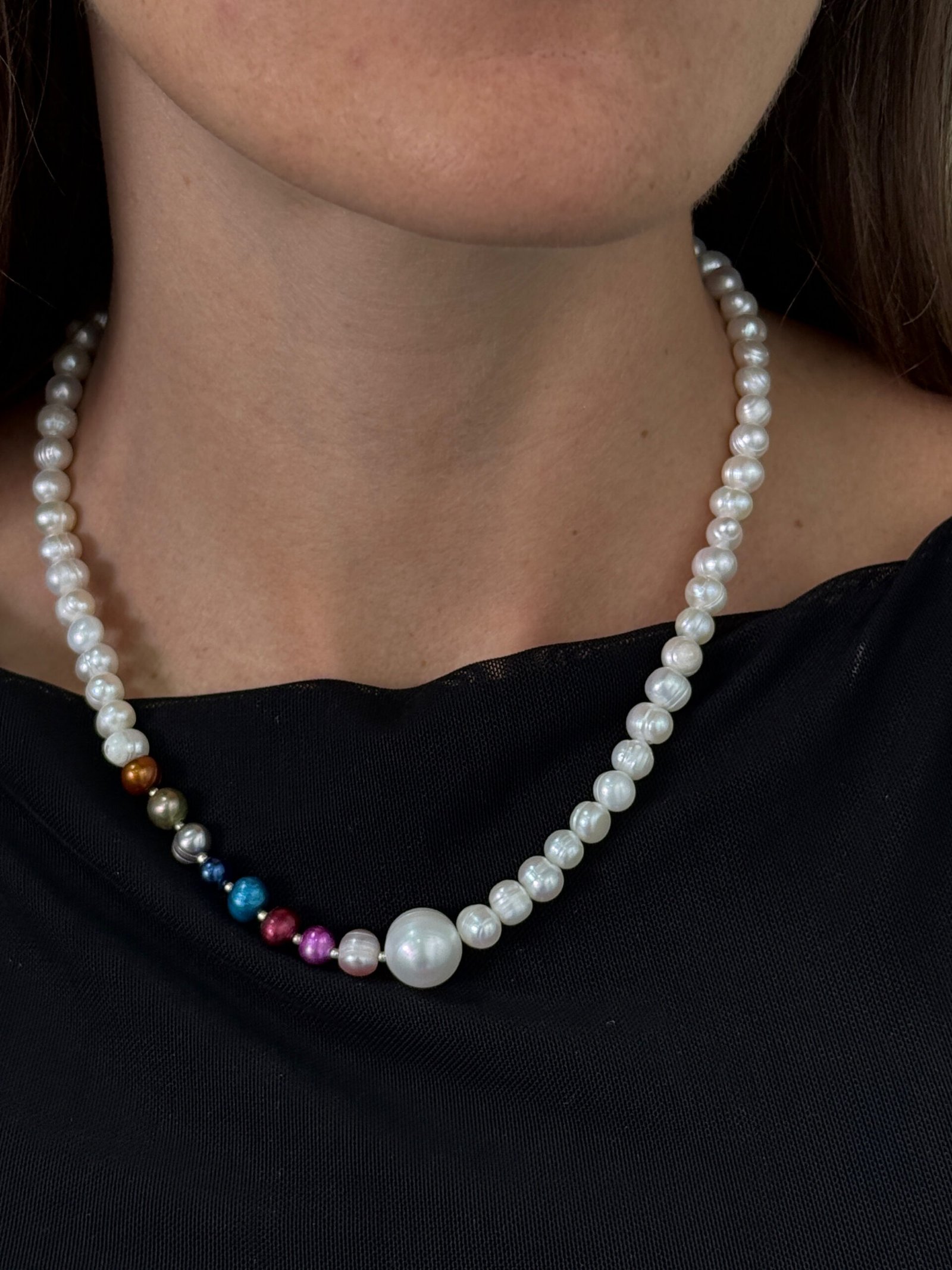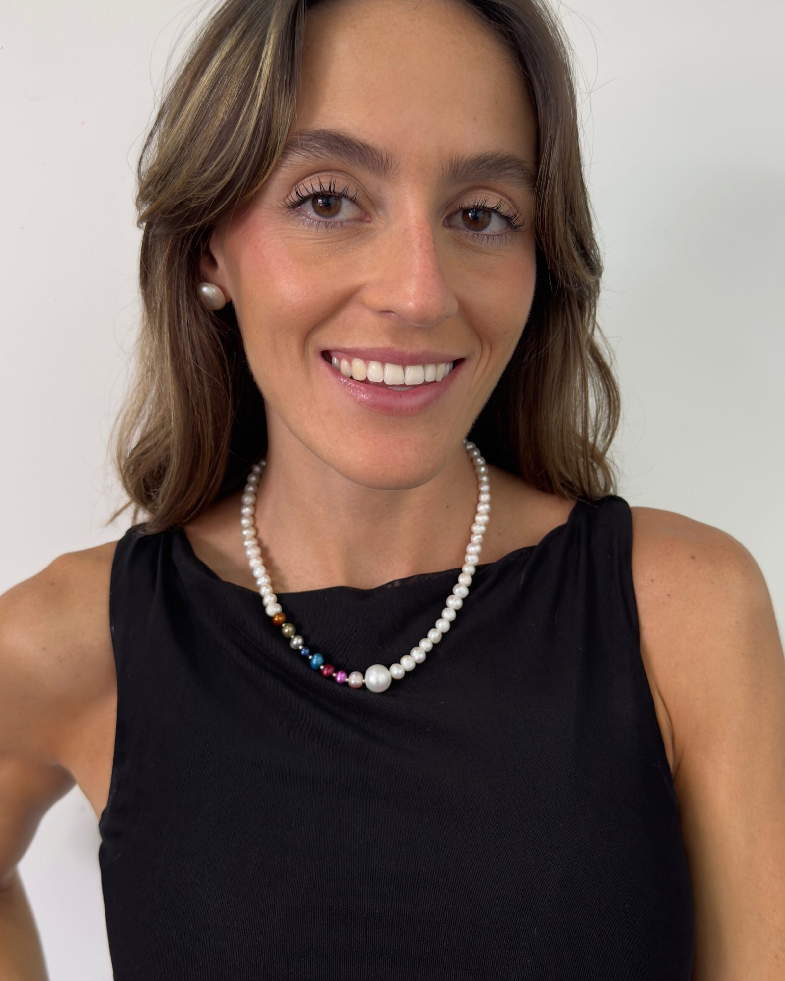 Un imprescindible que nunca pasa de moda. Collar de perlas cultivadas con acabado delicado, diseñado para aportar luz, equilibrio y distinción a cualquier ocasión por tener un poco de color.