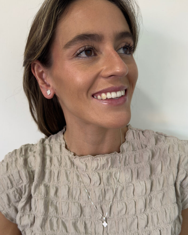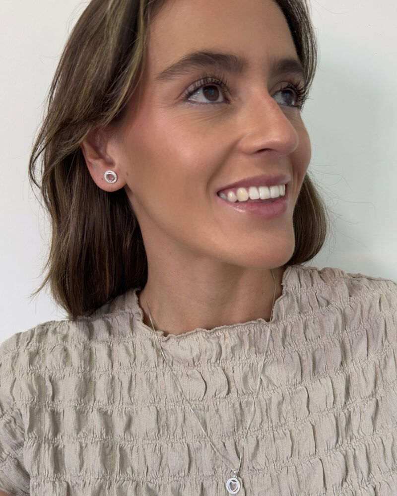 Set de joyería en plata 9.25, compuesto por cadena con dije y aretes coordinados. Su diseño atemporal lo convierte en un básico imprescindible, fácil de combinar y perfecto para regalar en momentos especiales.
