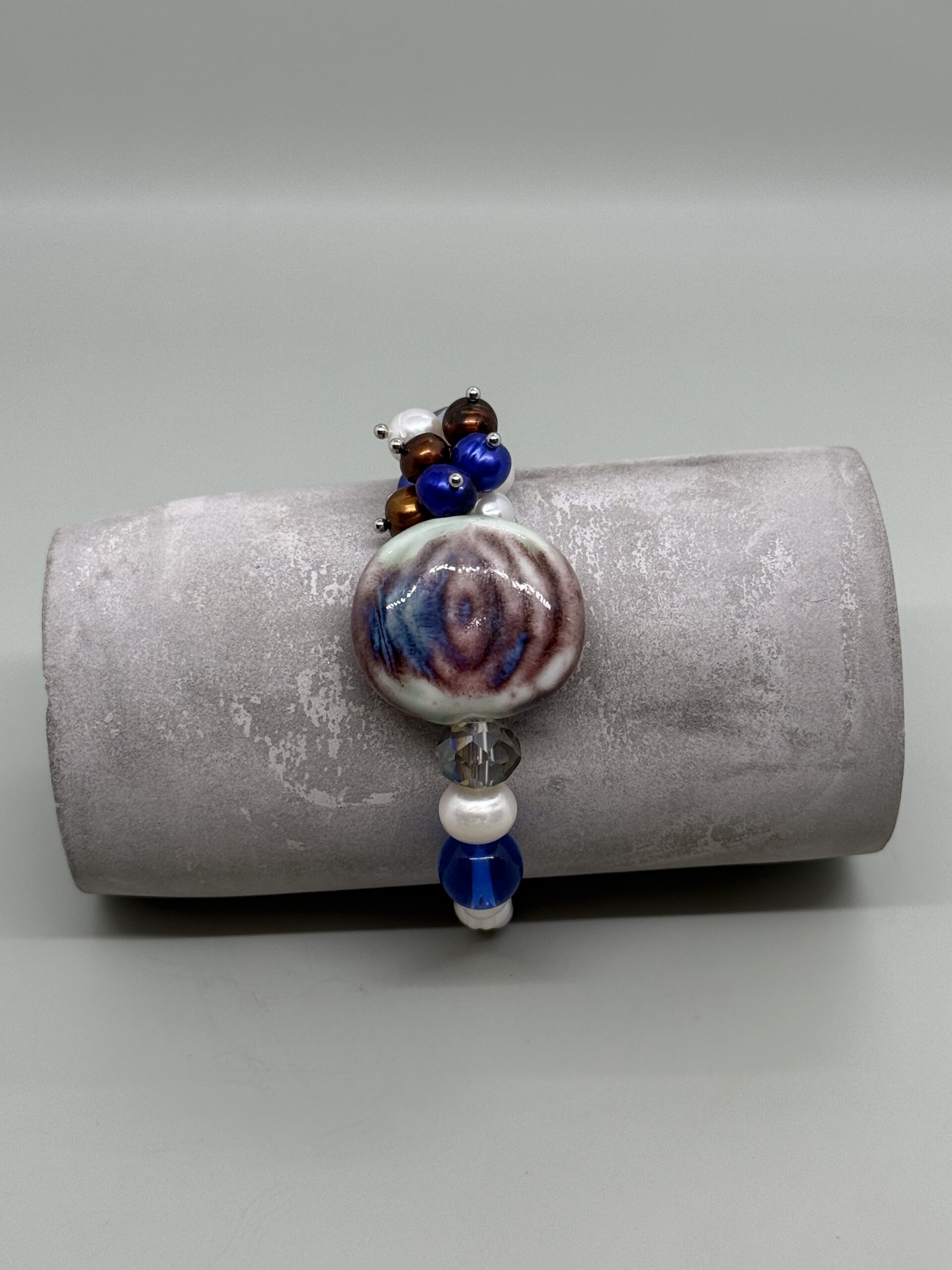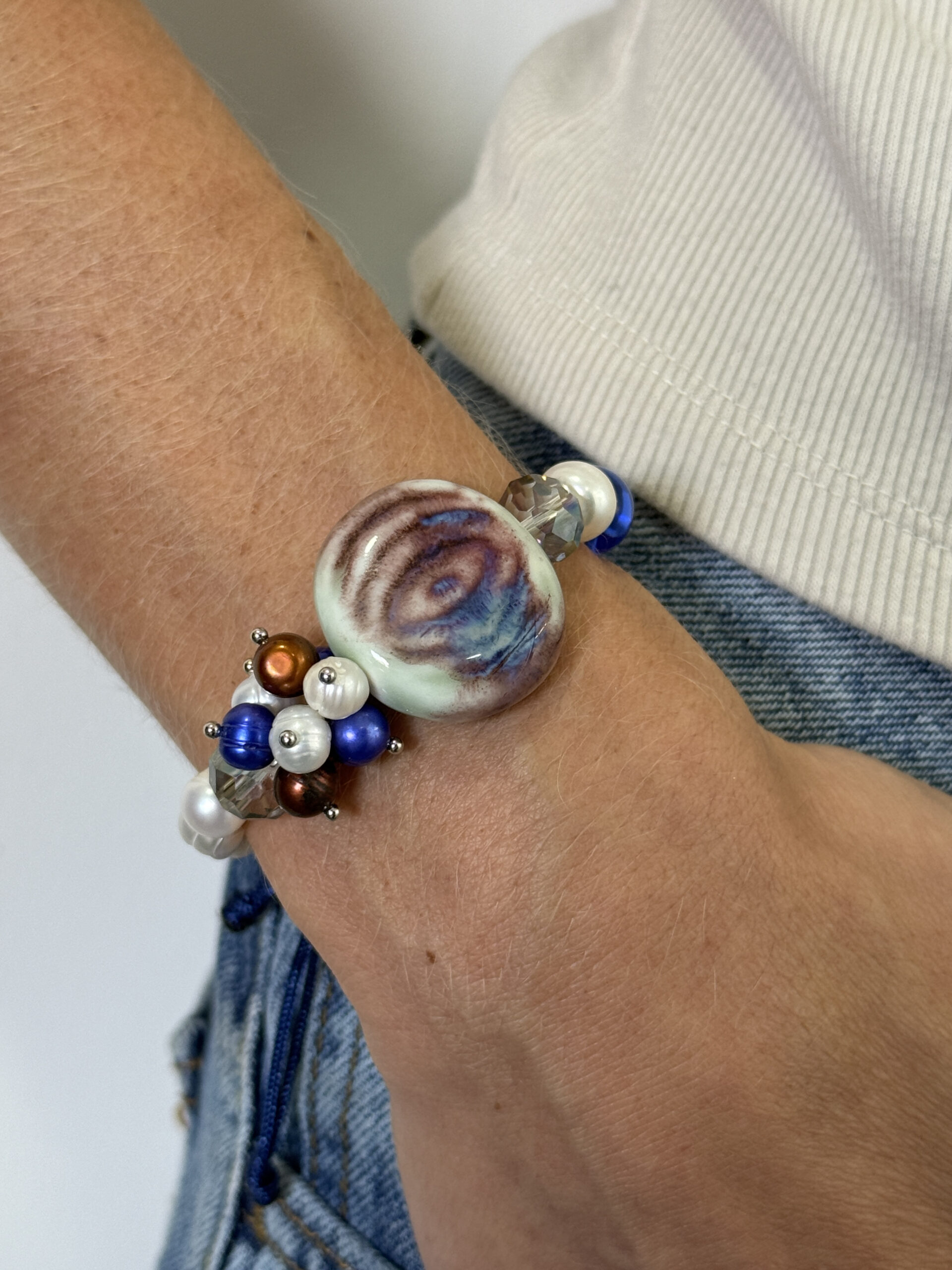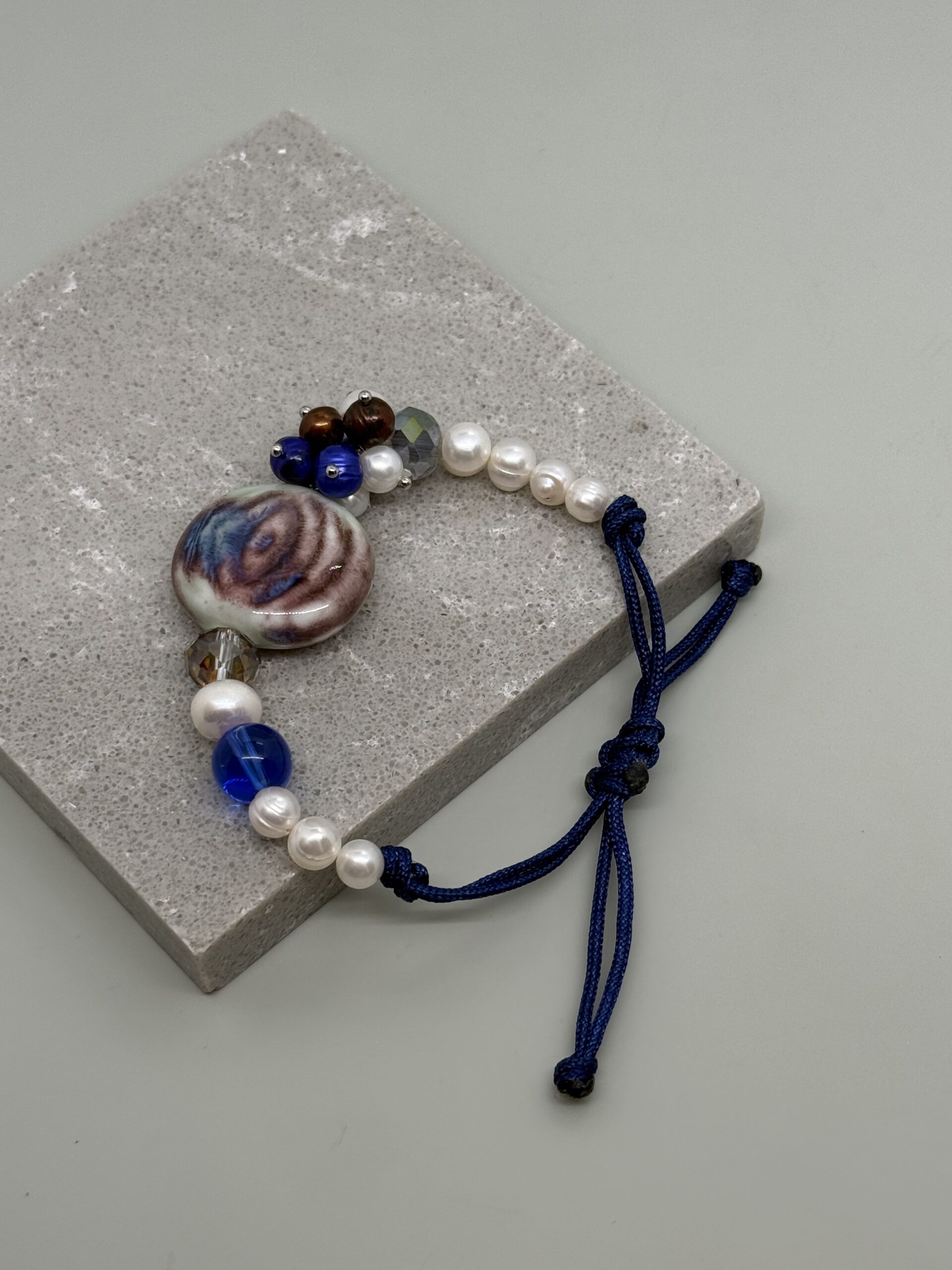 Una pulsera ajustable que nos brinda un look fresco, por su color, por su dije de cerámica, la vuelve una pieza única pero a su vez elegante. Combina perfecto con jeans lo cual se convierte en una pulsera de uso diario