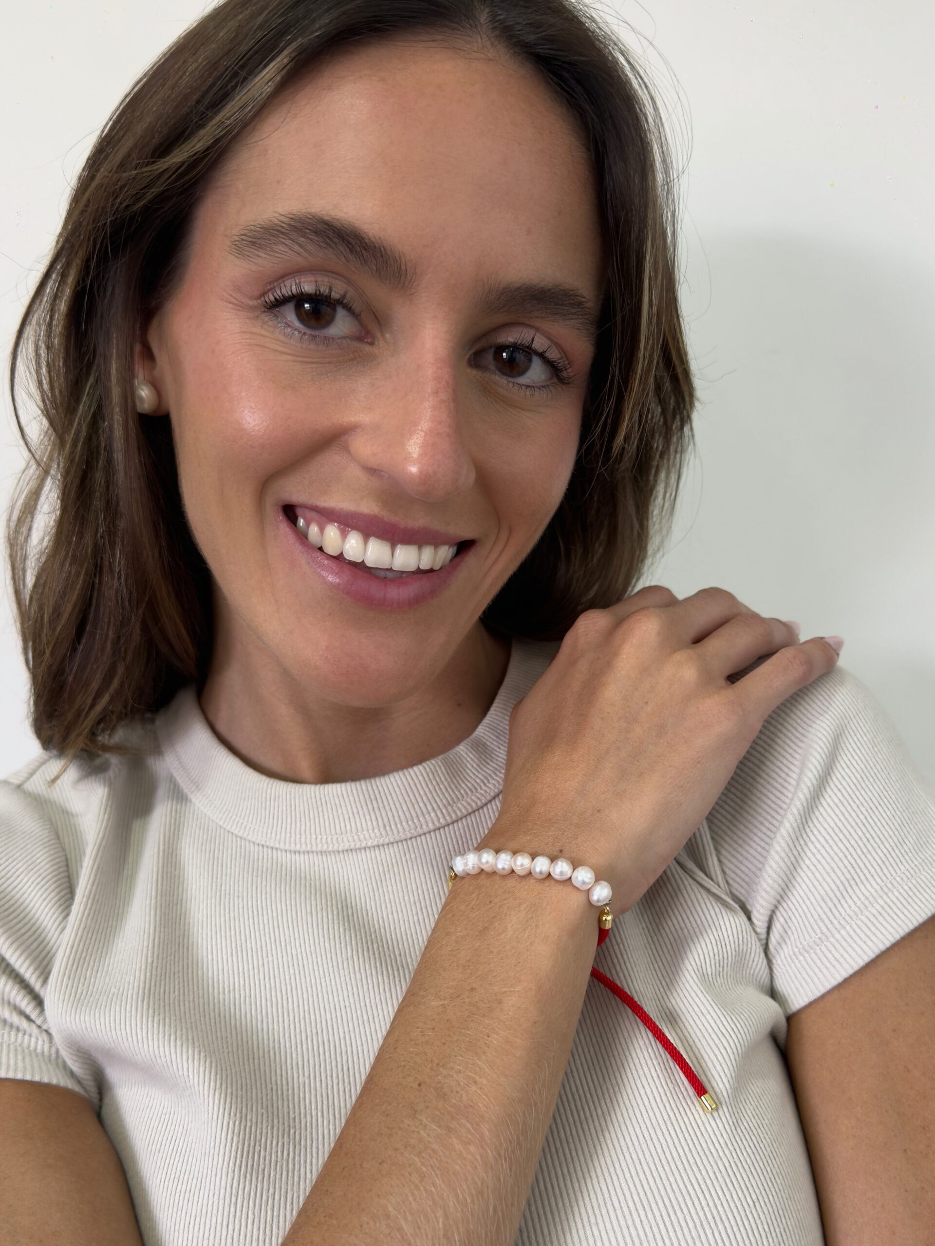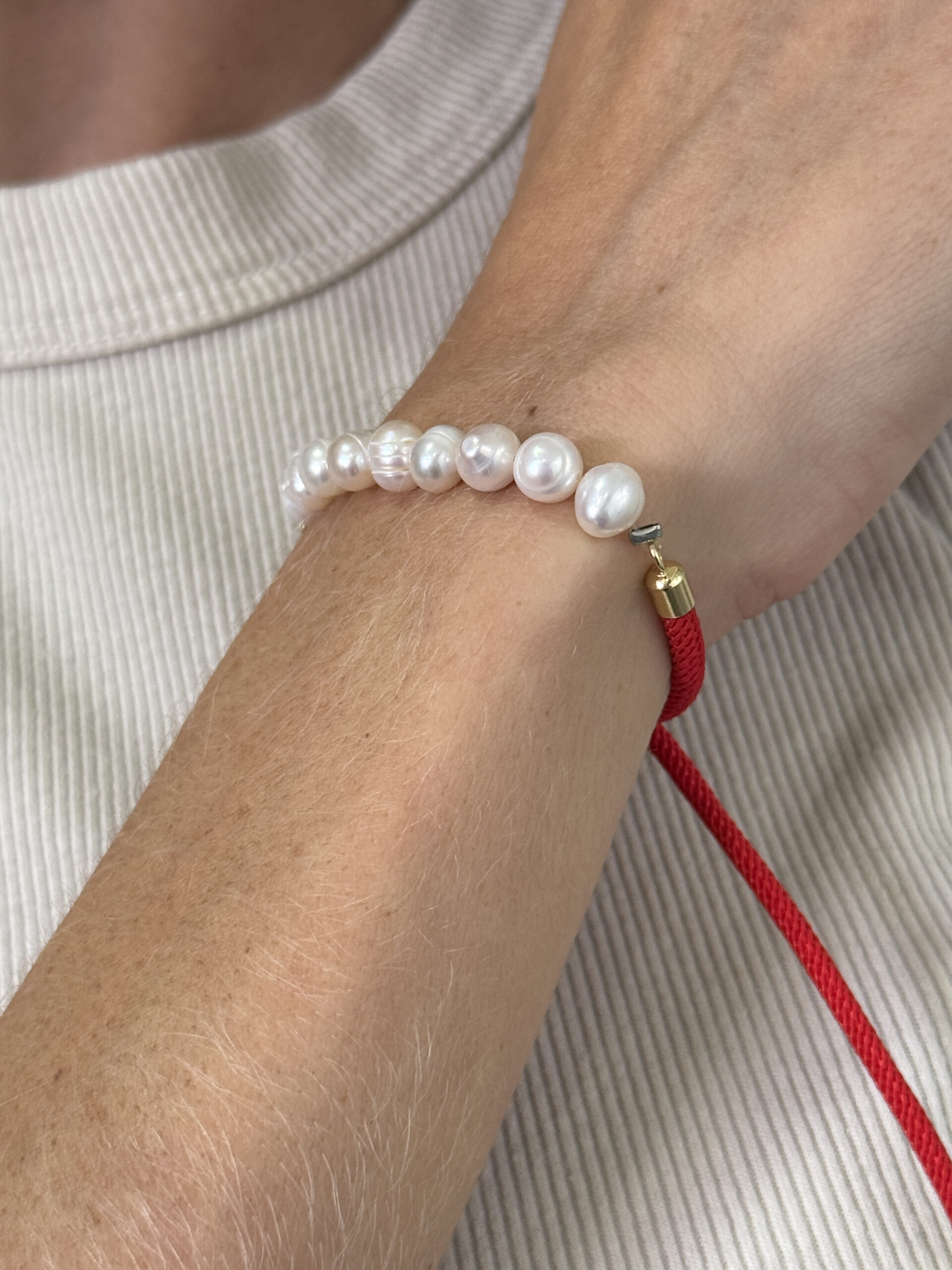 Una pulsera ajustable que combina el rojo y el blanco de las perlas, una gran combinación. Perfecta para el uso diario y darle un pop up de color a tus looks.