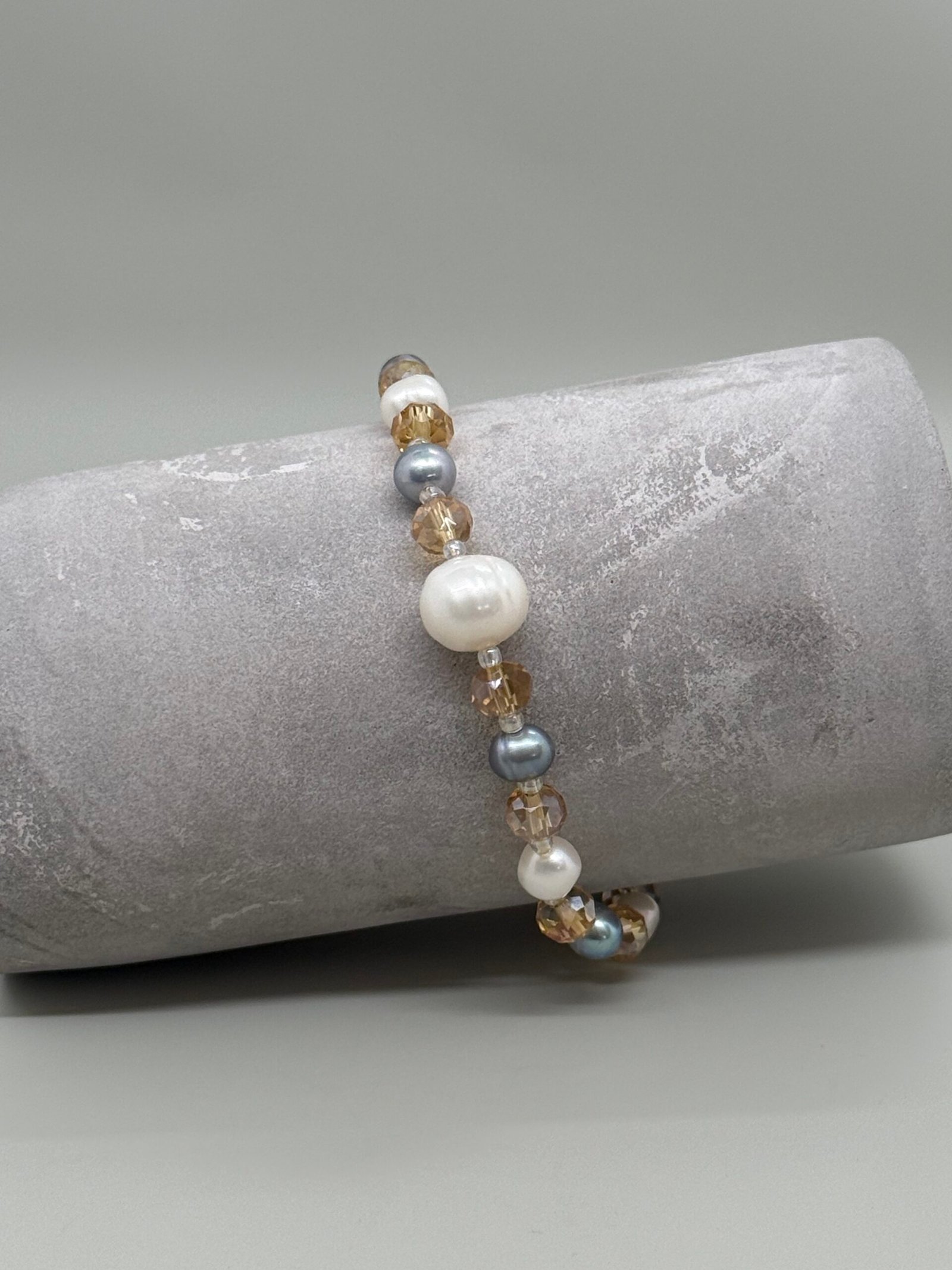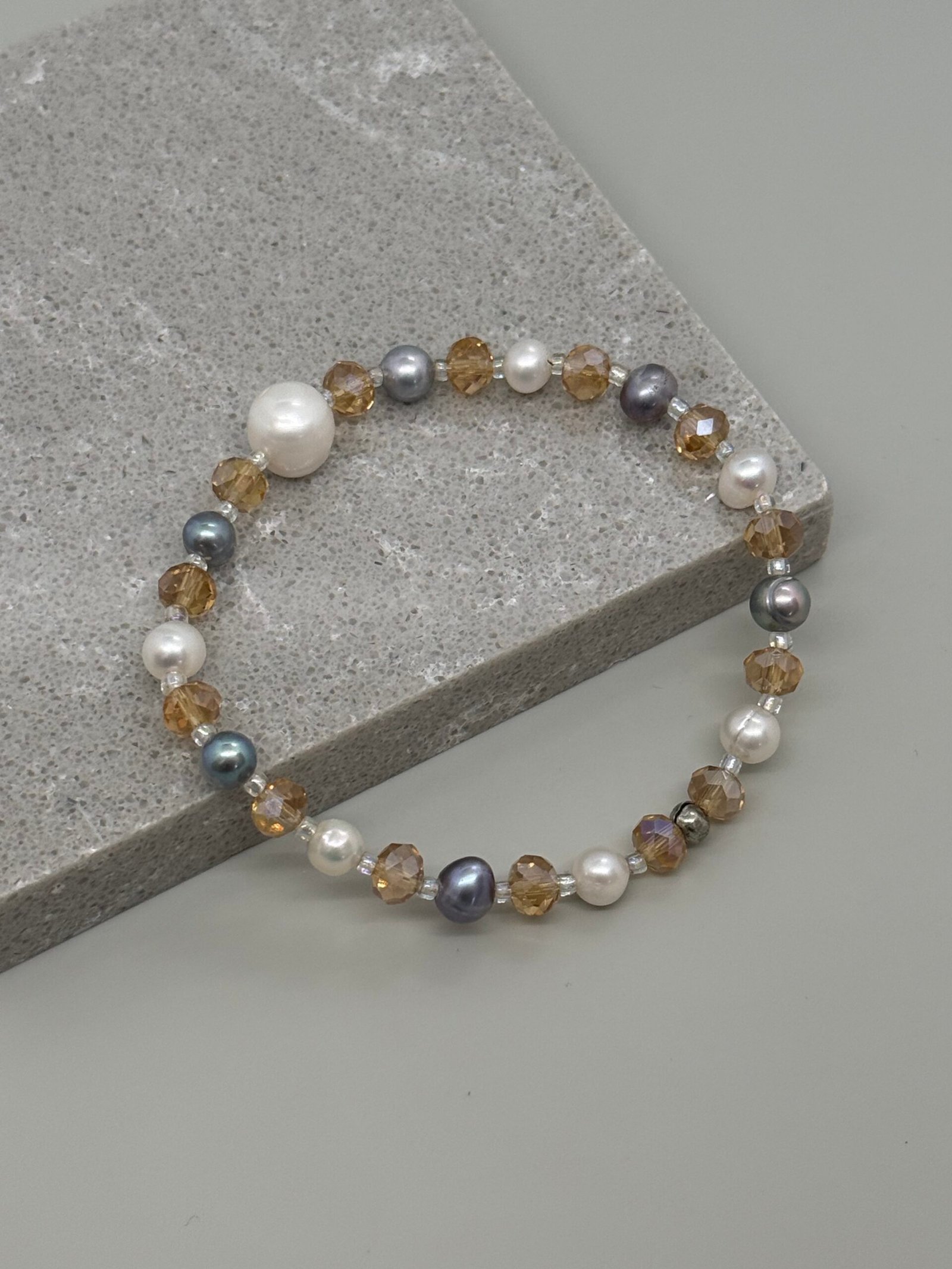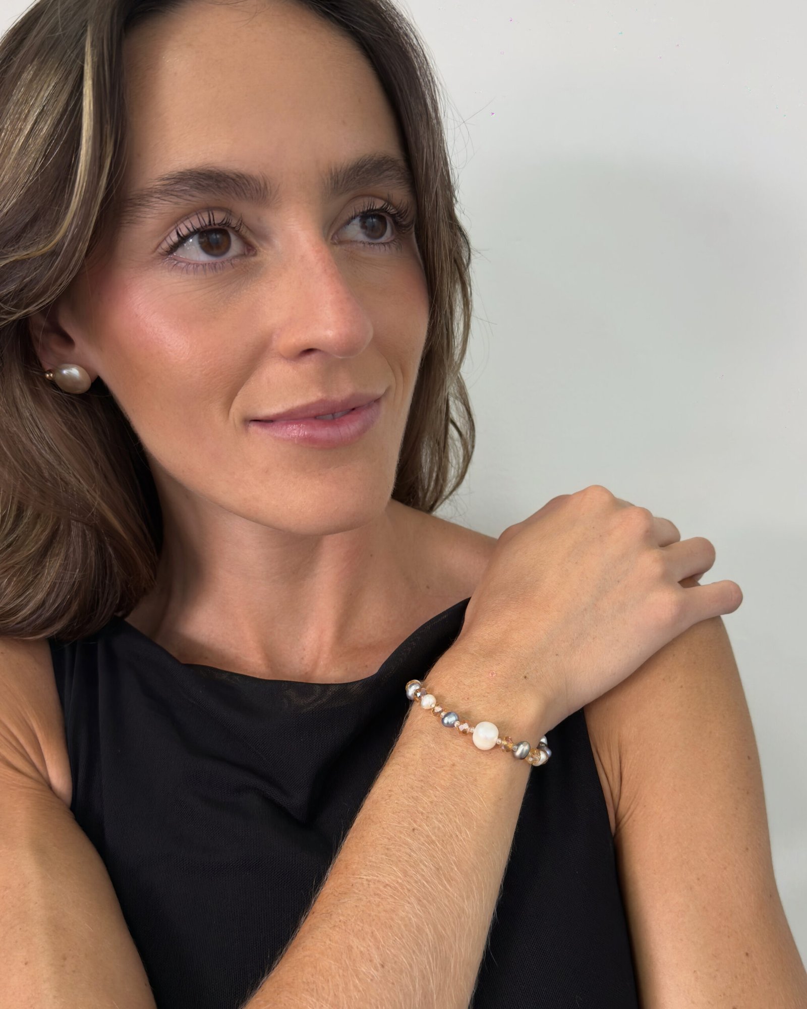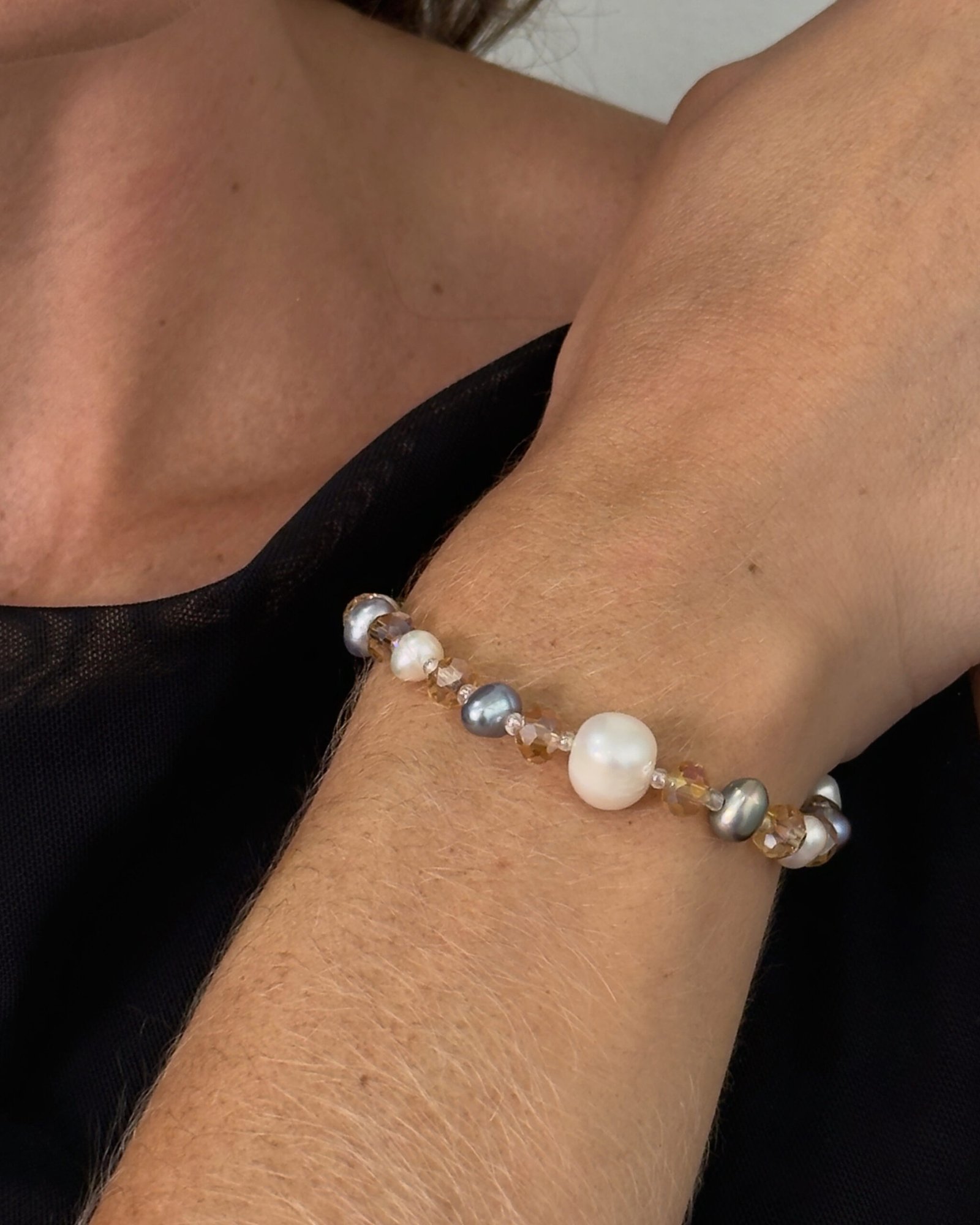 Pulsera elástica de perlas y cristales, diseñada para brindar comodidad sin perder elegancia. Ideal para usar todos los días y aportar un toque de brillo sutil a tu estilo.